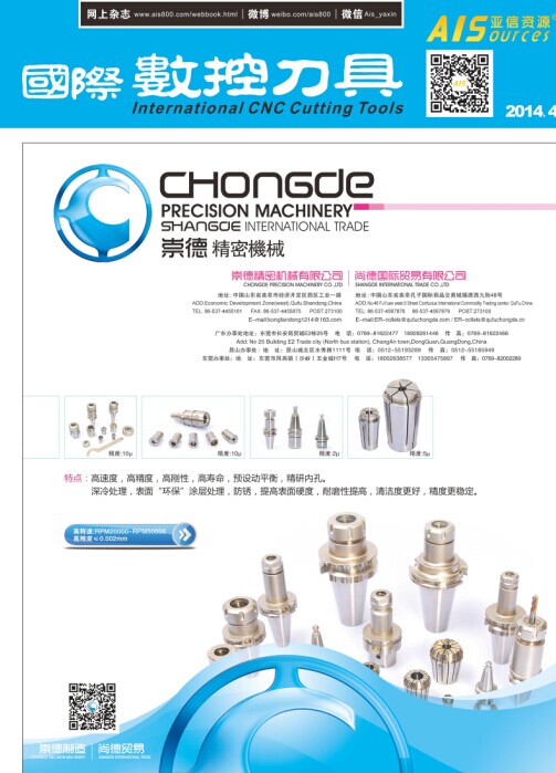 曲阜崇德精密機械有限公司通過不斷的努力創新,生產的數控刀具系列產品得到了海內外客戶的一致好評,2014年4月份榮登《國際數控刀具》書刊雜志封面。
