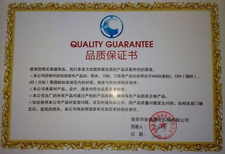 之所以我們崇德公司有如此高的好評,除了我們有過硬的品質保證外,更重要的是崇德公司的售后服務工作做的好。我們陳老板鄭重承諾:凡東莞鳳崗鎮附近有需要的客戶,你只要一個電話,我保證30分鐘內趕到。這也是我們公司在中國的多個片區就會設立辦事處的重要原因--崇德讓每位刀具使用者安心,放心,舒心。